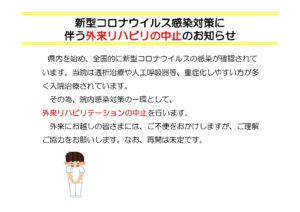新型コロナウイルスに感染症対策に伴う外来リハビリの中止のお知らせ