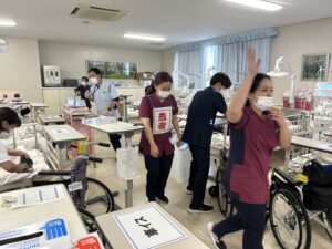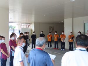 振り返り:報告を忘れた階があった。本部の位置の認識が徹底されていなかった。しかし、比較的単純な訓練であったが、対応の流れが見えるようになった。次回、さらに複雑な訓練が期待できた。