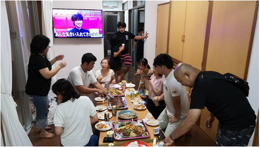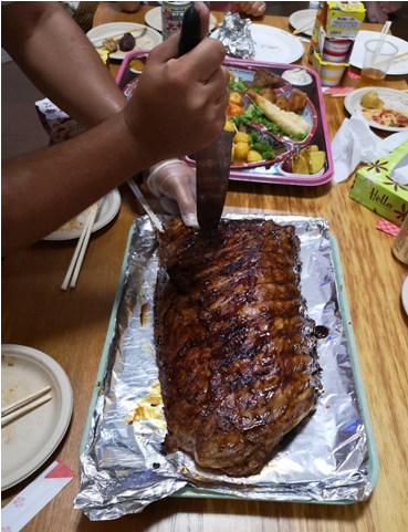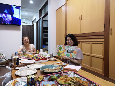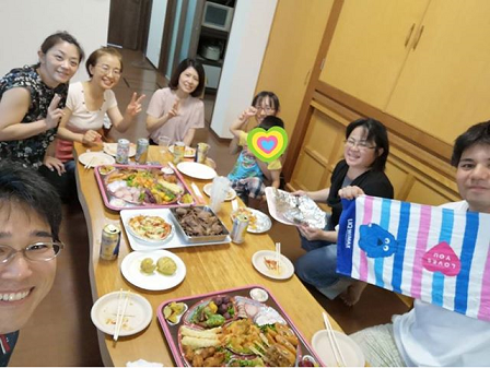 先日、当院栄養士邸にて歓送迎会をしました。ご主人、息子さんがお庭で焼いてくれた肉、ピザ、美味しく頂きました。