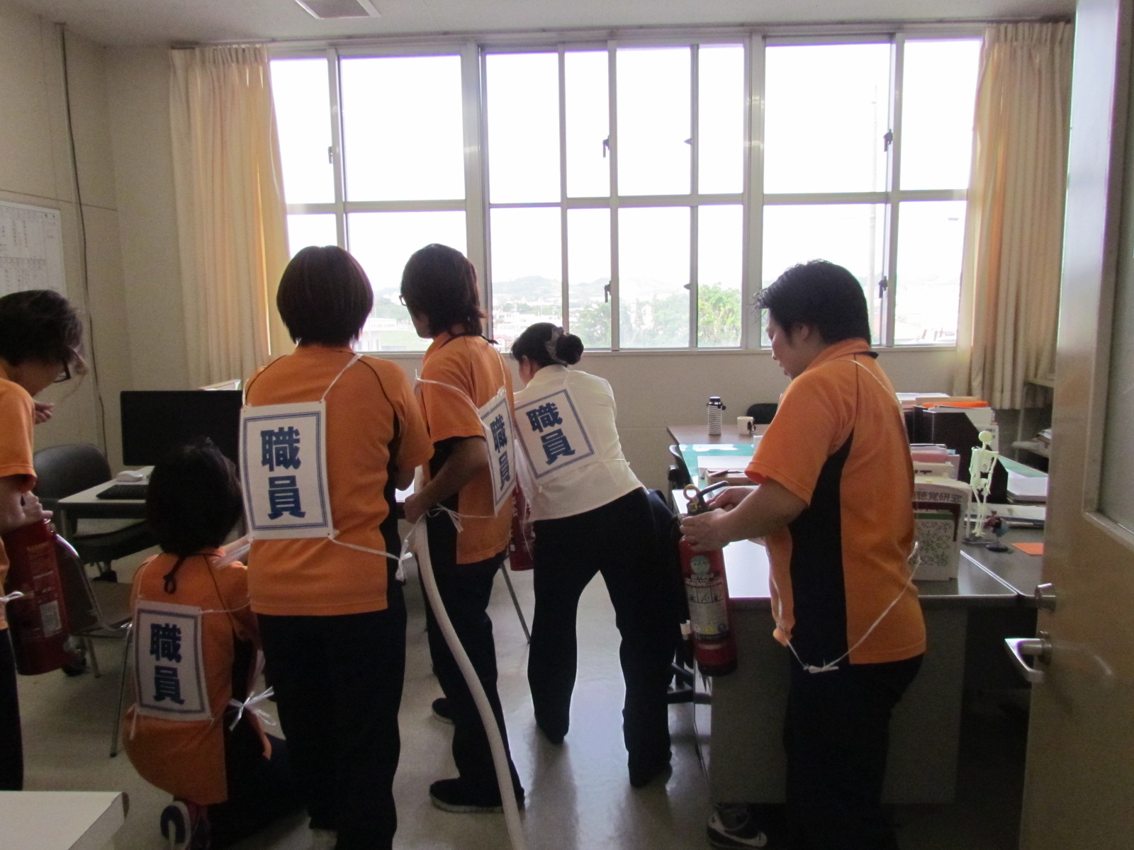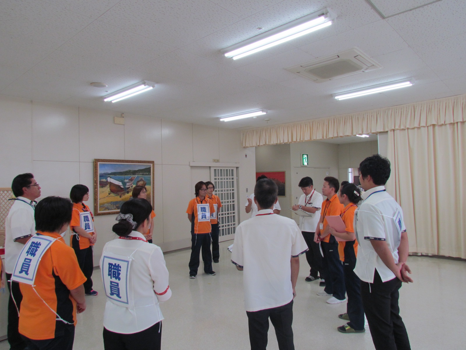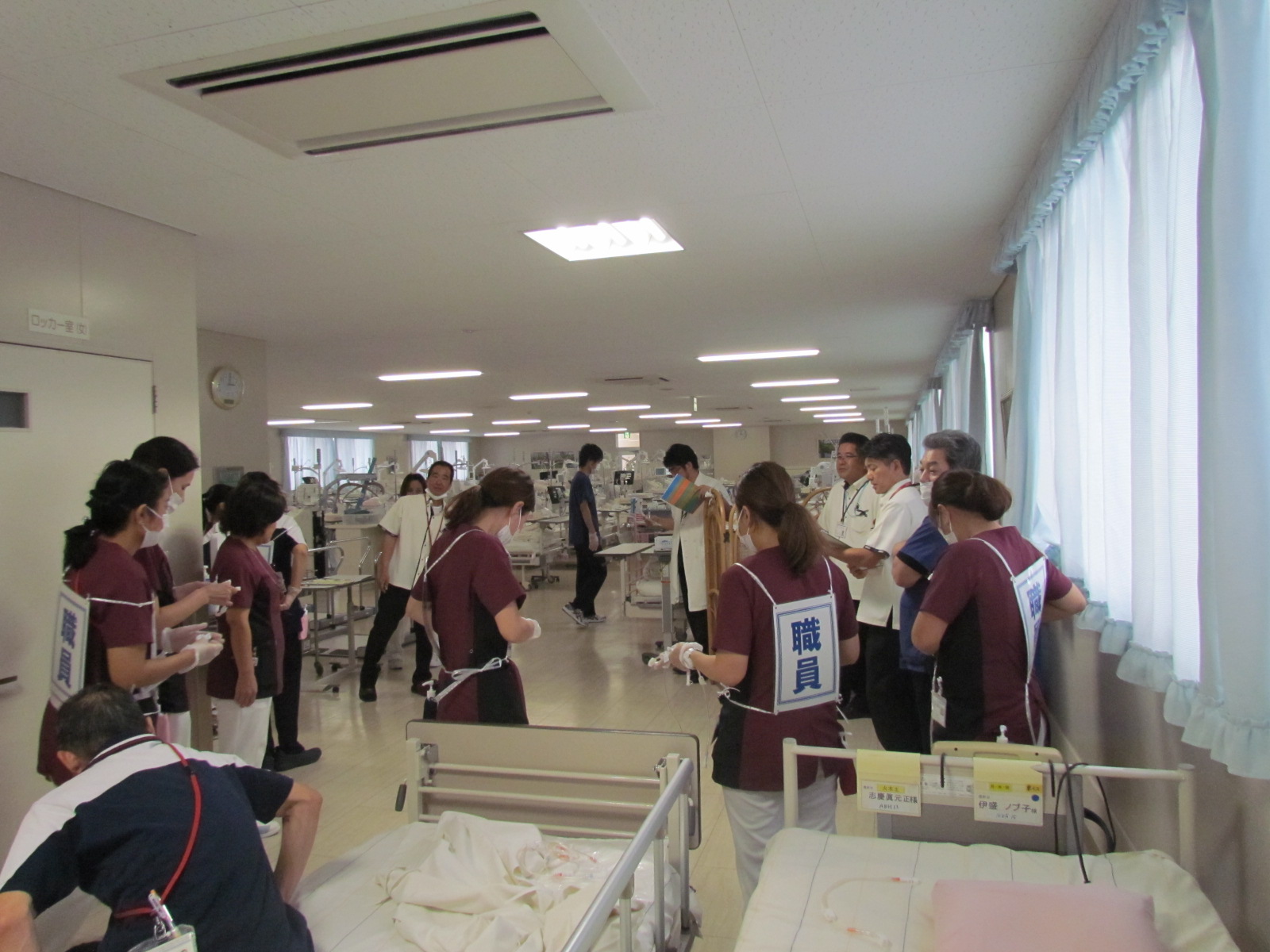 今回病棟は夜勤帯でスタッフの少なくなることを想定した訓練で、初期消火・通報・避難誘導の3つを念頭に置いて訓練を行いました。
