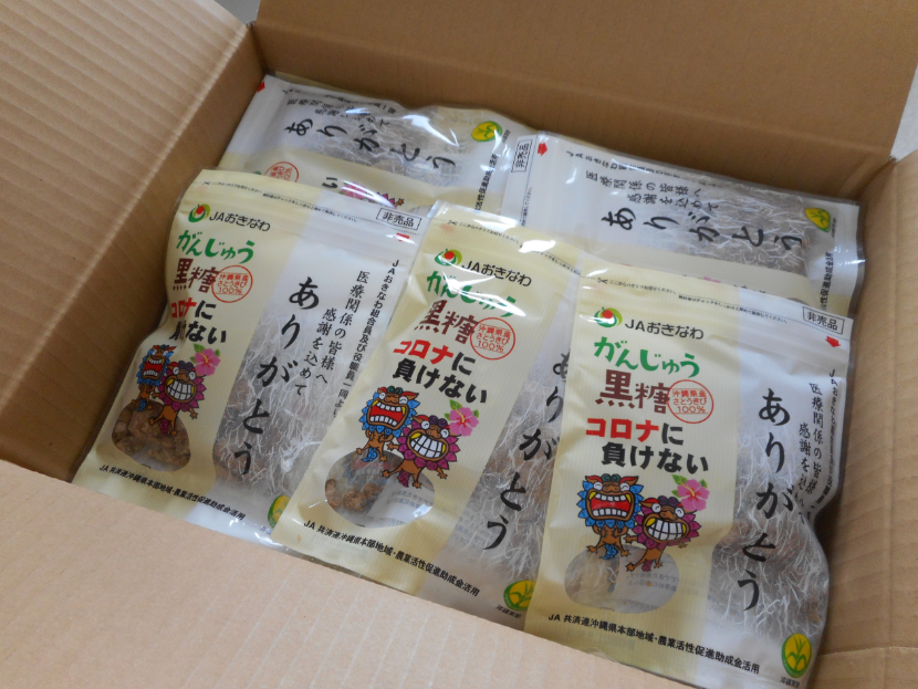 沖縄県農業協同組合(JAおきなわ)様より黒糖の寄贈がありました。 2020年10月16日 沖縄県農業協同組合(JAおきなわ)様より 「医療関係の皆様へ感謝を込めて ありがとう」との メッセージとともに『黒糖』の寄贈がありました。 ご支援いただきました沖縄県農業協同組合(JAおきなわ)様に心より感謝申し上げます。 お贈りいただいた黒糖は、ありがたく職員へ配布させていただきます。 これからも全職員が一丸となって、安心・安全な医療を提供できるよう努めて参ります。