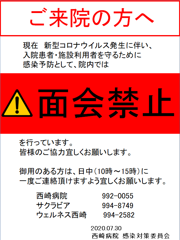 入院患者様を感染から守るため、皆さまのご理解とご協力をお願い致します。