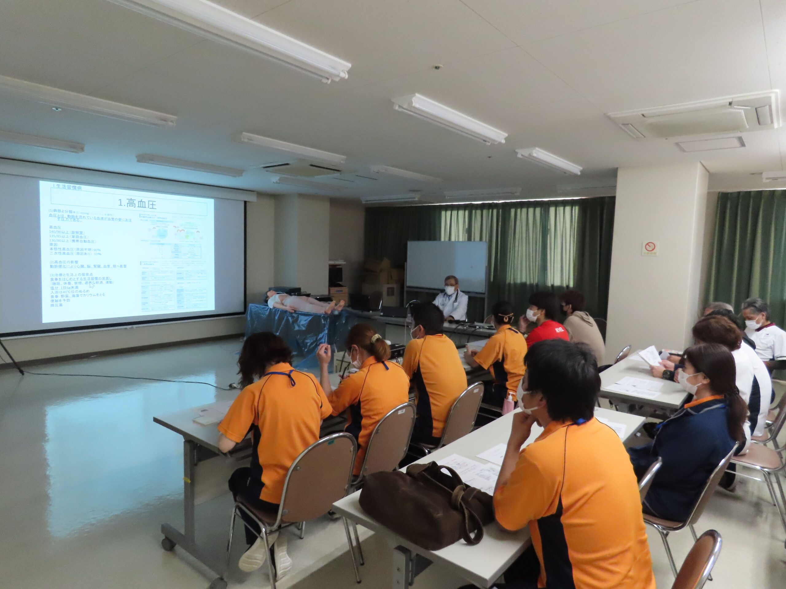 皆様、あけましておめでとうございます。2025年の活動として、介護職員の研修会を開始することにしました。早速、16日の仕事始めの日に管理棟5階会議室にて西崎病院・サクラビアの職員を対象にした研修会を開催しました。約30名の職員が参加し、下記の内容について講義・実習を行いました