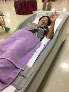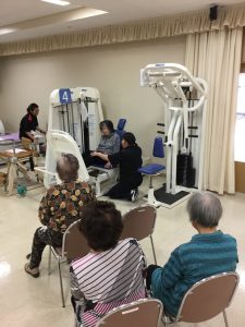 講師は城間定治副施設長、アシスタントに理学療法士の赤嶺世里奈さんで臨みました。
