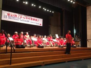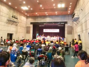 今回は11施設が発表し、ソフィアも「上を向いて歩こう」と「高校三年生」を合奏・合唱しました。